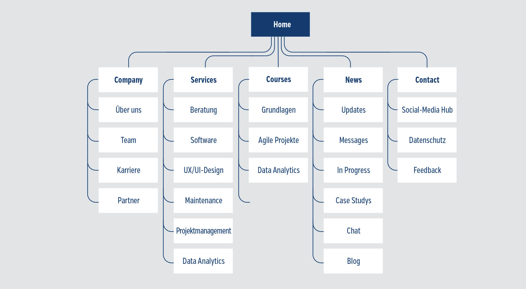 Strukturierte Übersicht aller Seitenbereiche.